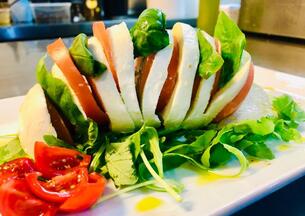Octopus in garlic, extravirgin olive oil, chickpea cream, spinach, mozzarella di bufala cheese